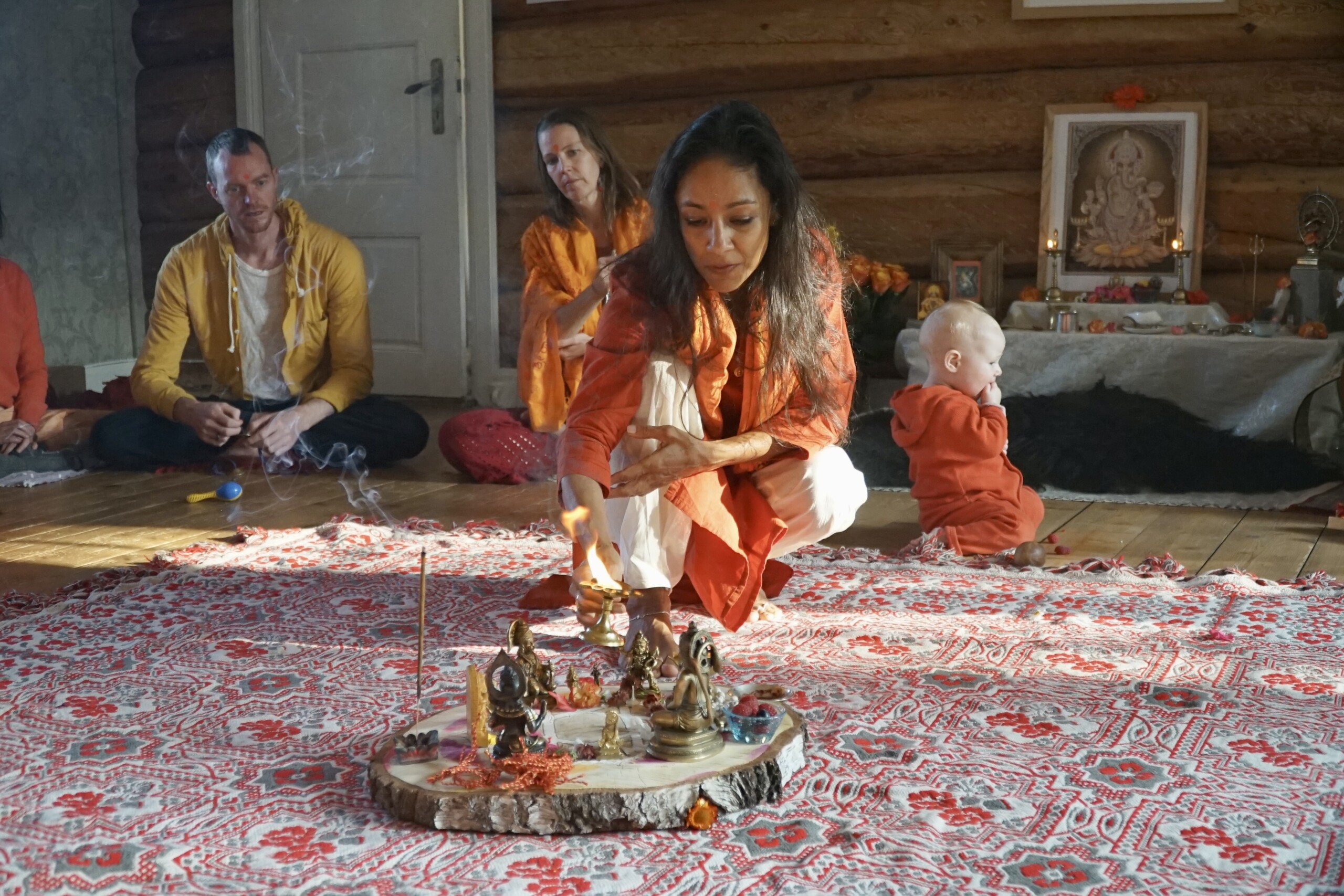 - Satsang (gathering in truth) with Umā, 108 rounds of Hanumān Cālīsā and integration