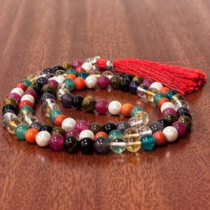 The Navagrāha mālā is a garland of 108 gemstones similar to the one shown here, with each mālā and the gemstones on it possessing unique qualities.